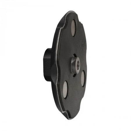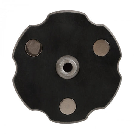 Die Basis lässt sich einfach auf Winkelschleifern mit regelbarer Drehzahl (max. 3500 U/min) auf dem Stützflansch montieren. Sie hat einen Außendurchmesser von 100 mm und eine M14-Aufnahme. Im Set enthalten sind die Basis und drei Stahlhalter für Polierscheiben.