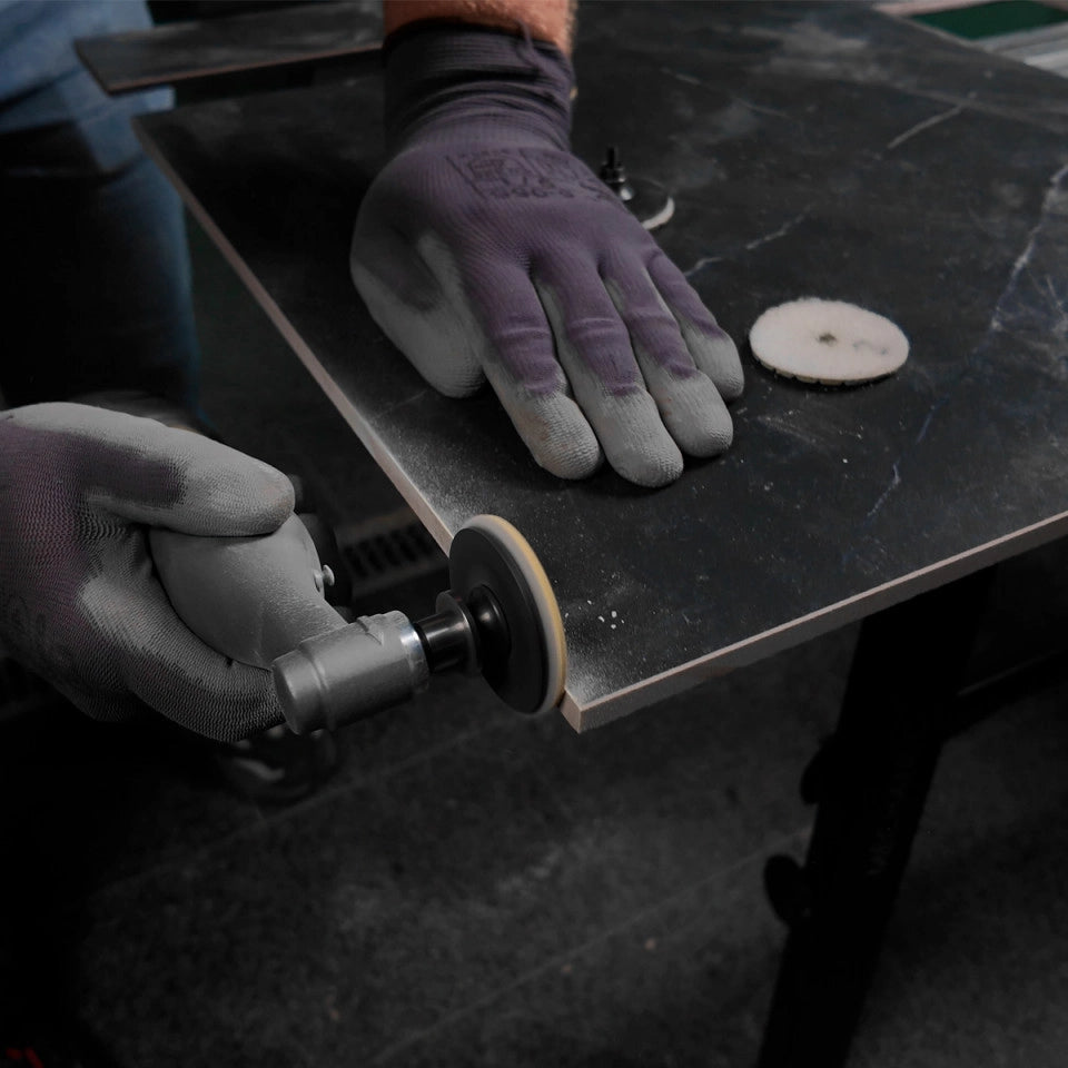 Das Schleifen von Feinsteinzeug ist besonders auf schwächeren Geräten eine Herausforderung. Die CoolPAD Polierscheiben wurden speziell für das Trockenschleifen mit Gravurmaschinen entwickelt. Die diamantführende Schicht sorgt für eine gleichmäßig hohe Schleifgeschwindigkeit und eine saubere Oberfläche.