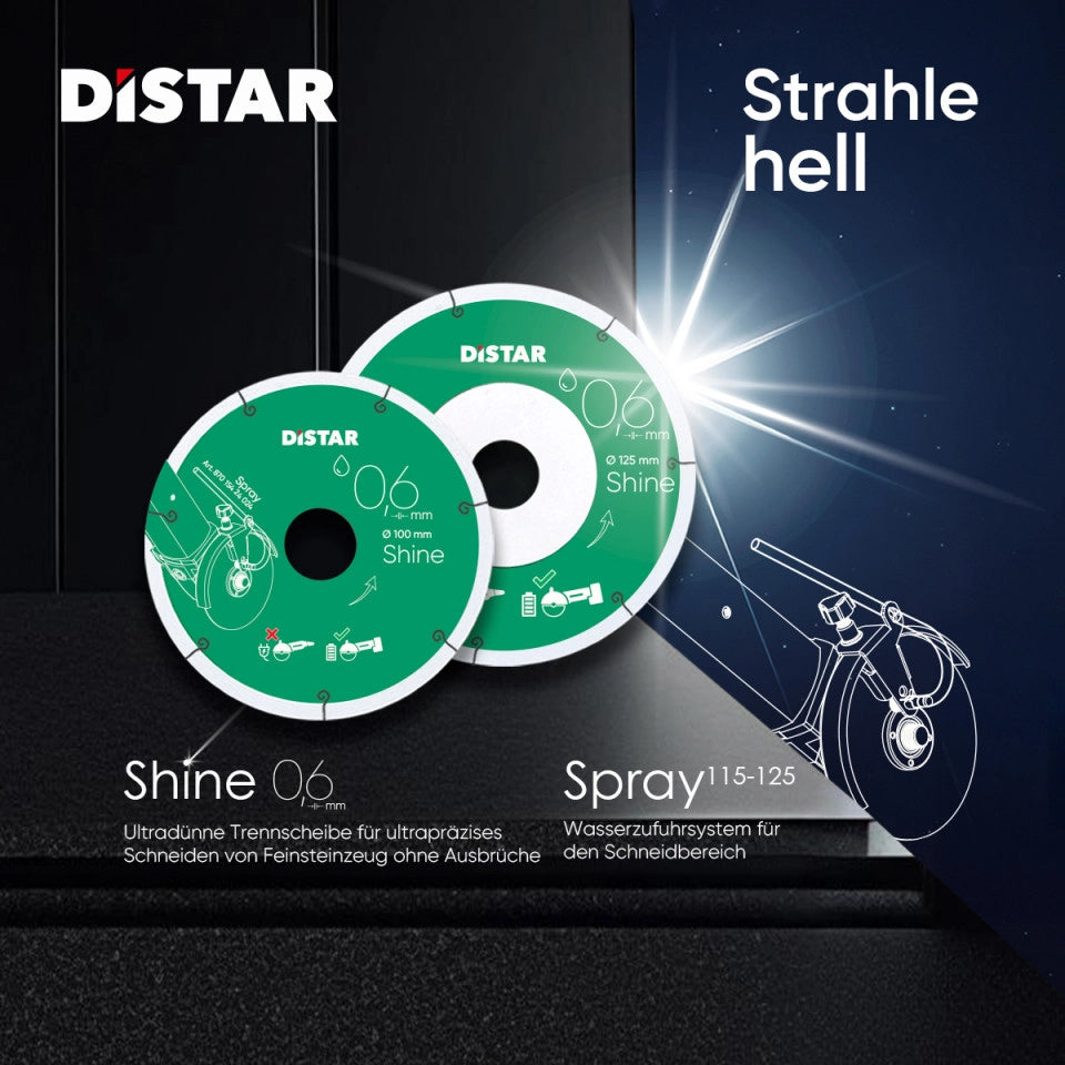 Die Shine Trennscheibe wurde speziell für Akku-Winkelschleifer entwickelt und bietet ultrapräzise Schnitte ohne Absplitterungen oder Nachbearbeitung. Mit einer nur 0,6 mm dünnen Diamantschicht liefert sie perfekt glatte Schnittkanten – ein echter Produktivitätsschub für Profis.
