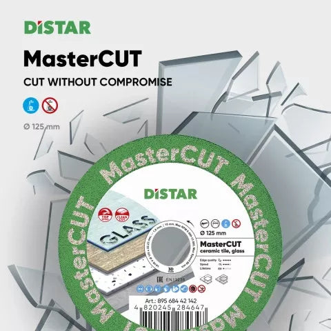 Die MasterCUT ist eine leistungsstarke Trennscheibe für den Trocken- und Nassschnitt und eignet sich ideal für Feinsteinzeug und extrem harte Materialien wie Glas. Sie kann sowohl auf einem Winkelschleifer im Trockenbetrieb als auch mit Wasserkühlung auf einem Fliesenschneider verwendet werden.