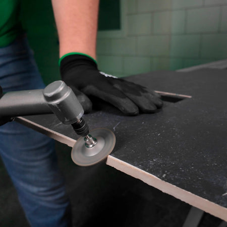 Schleifen von Feinsteinzeug gehört zu den zeitaufwendigsten Arbeitsschritten bei dessen Bearbeitung – insbesondere beim Einsatz von schwächeren Winkelschleifern.