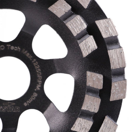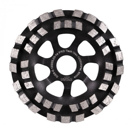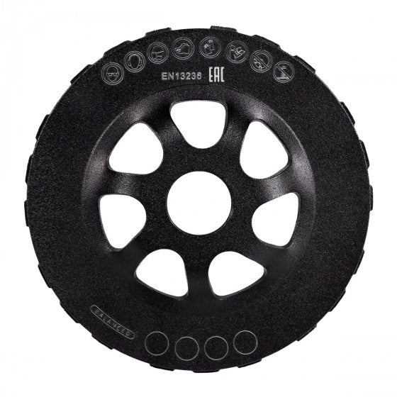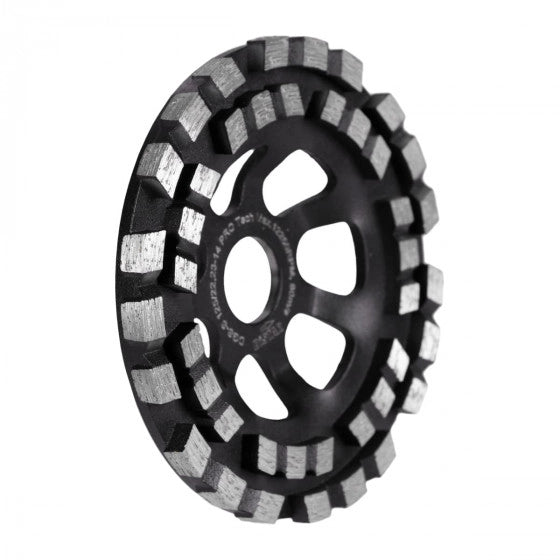 Die Pro Tech Diamantschleiftopfscheibe ist eine zuverlässige und leistungsstarke Lösung für die Bearbeitung von Betonoberflächen und Naturstein. Zwei Reihen turbogeladener Segmente sorgen für eine hohe Abtragsleistung und ermöglichen effizientes Arbeiten, selbst bei hochfesten Materialien.