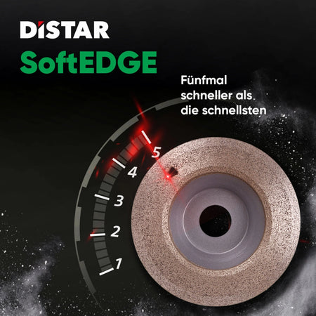 Der Distar SoftEDGE Schleiftopf ist ein Profi-Werkzeug zum trockenen Schleifen von Feinsteinzeug und Naturstein (bis 20 mm). Durch seine spezielle Bauweise ermöglicht er eine bis zu 5-fach höhere Schleifgeschwindigkeit im Vergleich zu Standardwerkzeugen – ohne Ausbrüche oder Schäden an der Oberfläche.