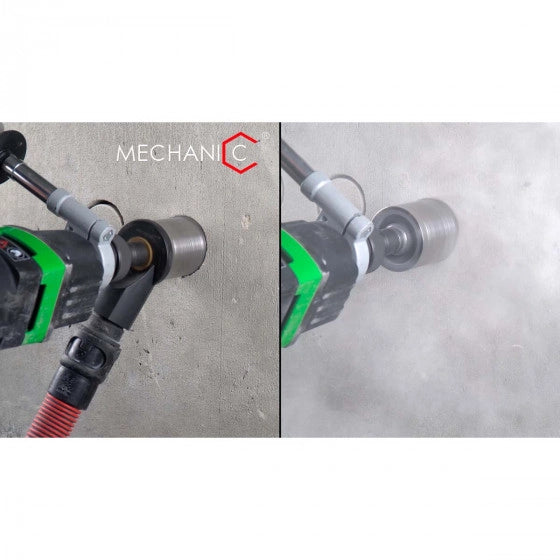 Das Bohren von Installationslöchern in Beton- oder Ziegelwänden führt oft zu einer großen Staubentwicklung. Mechanics bietet hier eine praktische Lösung mit dem SocketDuster 68-82. Diese Staubabsaugung wird direkt am Schaft des Dosensenkers montiert und saugt den Staub effizient über die Deckelbohrungen des Werkzeugs ab.